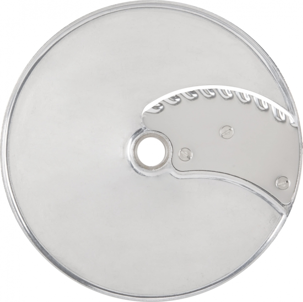 Диск-слайсер Robot Coupe 27070W используется совместно с моделями R502G, CL50, CL50 Ultra,CL52, CL55, CL60 на предприятиях общественного питания, торговли и пищевых производствах для нарезки колбасных изделий, сыров твердых сортов, копченостей и других пищевых продуктов волнистыми ломтиками. Обработка поверхности дисков "Mineral+" обеспечивает улучшеннцю защиту поверхности диска и упрощает их очистку, а также, снижает трение о диск. Материал изделия - алюминий.