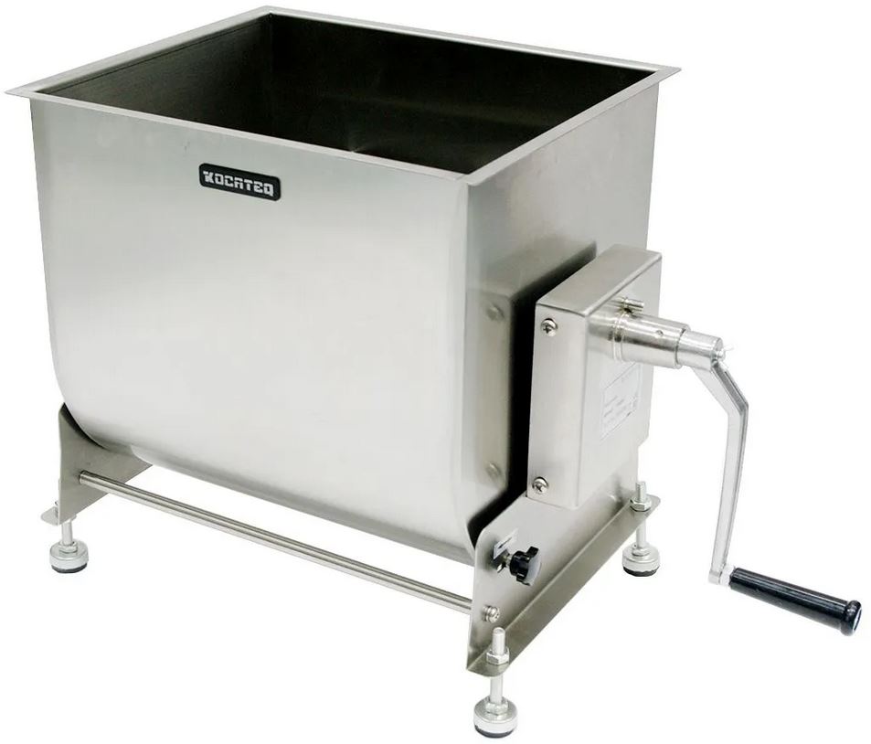 Фаршемешалка Kocateq FME50T используется для перемешивания измельченного мяса или рыбы и приготовления фарша на предприятиях общественного питания и торговли. Привод - ручной, с возможностью подключения к электроприводу G22. Откидной бункер. Корпус, съёмная ось с лопатками выполнены из нержавеющей стали толщиной 3мм, ёмкость для смешивания из нержавеющей стали толщиной 2мм.