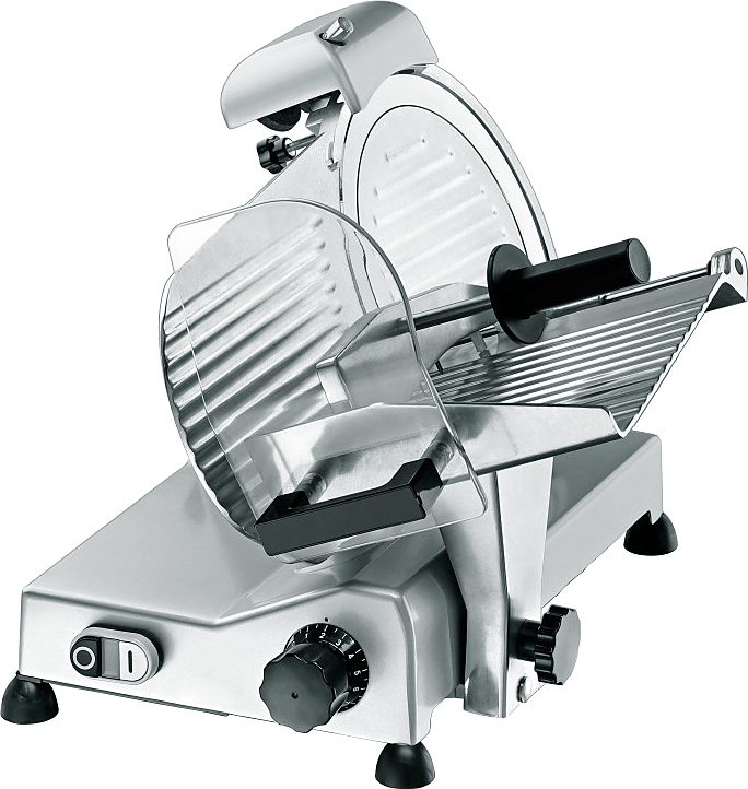 Слайсер Hualian 250ES-10 используется на предприятиях общественного питания, торговли и пищевых производствах для нарезки мяса, сыра, колбасных изделий и других продуктов питания на ровные ломтики. Модель оснащена самозатачивающимся ножом, защитным кожухом и ограничителем. Материал корпуса - алюминий, материал ножа - высококачественная нержавеющая сталь, материал ограничителя и защитного кожуха - пластик.