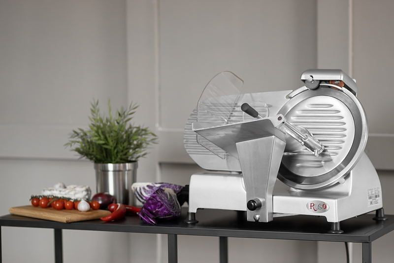 Слайсер Rosso HBS-220A предназначен для нарезки продуктов на ломтики заданной толщины на предприятиях общественного питания и торговли. Корпус выполнен из нержавеющей стали.