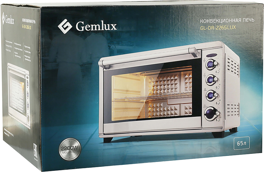 Конвекционная печь Gemlux GL-OR-2265LUX используется на предприятиях общественного питания, торговли и пищевых производствах для запекания мяса, овощей и выпечки хлебобулочных изделий. Модель оснащена электронным управлением, роторным грилем, регулировкой температуры верхнего и нижнего ТЭНов, таймером и подсветкой внутренней камеры. Материал корпуса - высококачественная нержавеющая сталь, материал дверцы - огнеупорное стекло.
