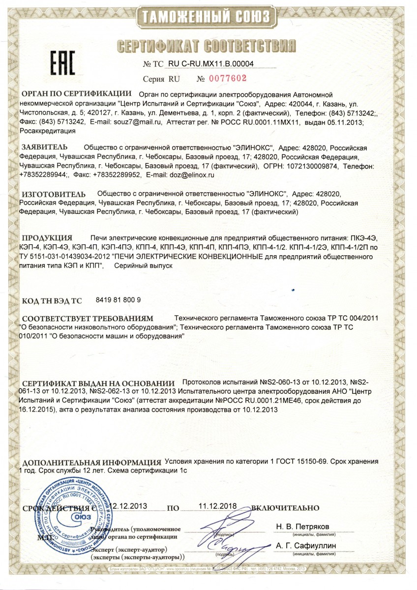 Печь может устанавливаться в колонну с конвекционной печью КПП-4-1/2Э, расстоечным шкафом ШРТ-4-02 и пароконвектоматом ПКА 6-1/3П или ПКА 6-1/2П при использовании установочных комплектов КСП6-1/3П и КСП6-1/2П.