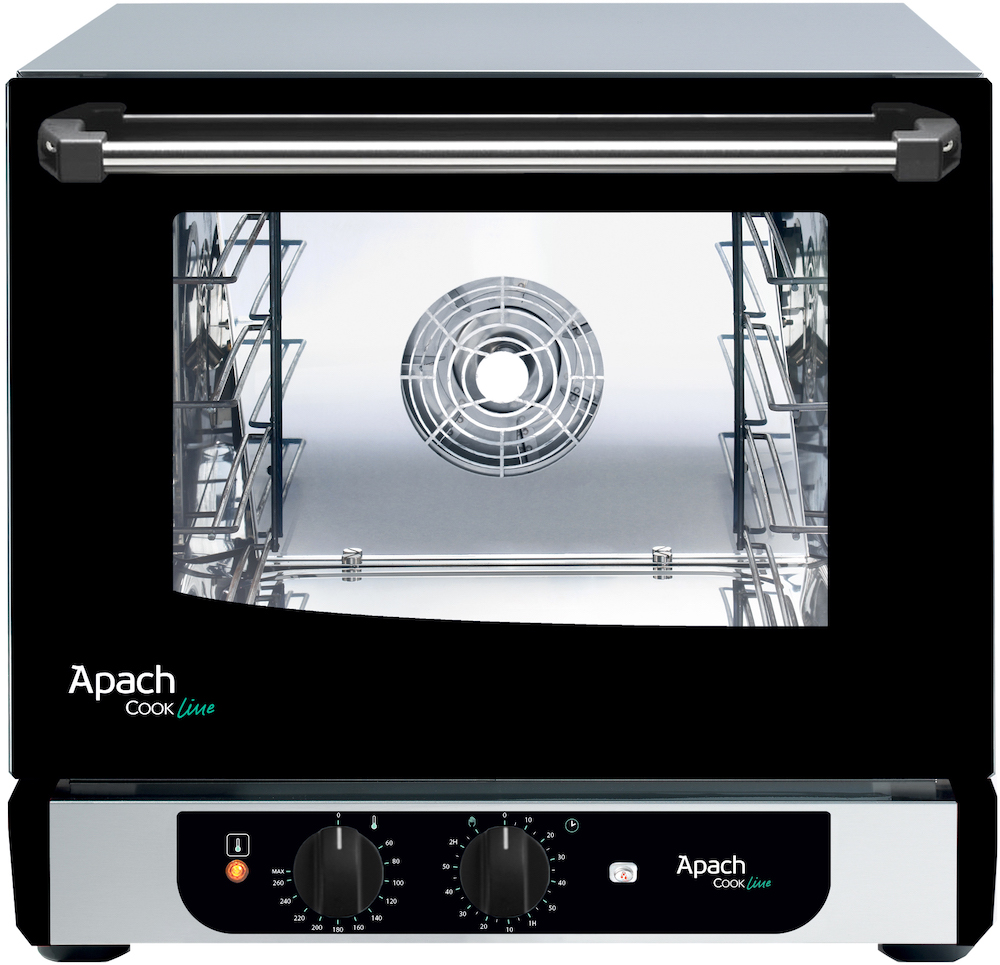 Конвекционная печь Apach AD44MH ECO с помпой идеальное решение для заведений, где нет возможности подвести воду. Предназначена для выпекания или разогрева кондитерских и хлебобулочных изделий, готовых блюд, замороженных или предварительно выдержанных в расстоечном шкафу заготовок из теста на предприятиях общественного питания и торговли. Встроенная помпа позволяет подавать воду для функции пароувлажнения, используя для этого любую подходящую емкость. Подсветка камеры осуществляется галогеновой лампой. Корпус выполнен из нержавеющей стали, дверца - из двойного закаленного стекла.