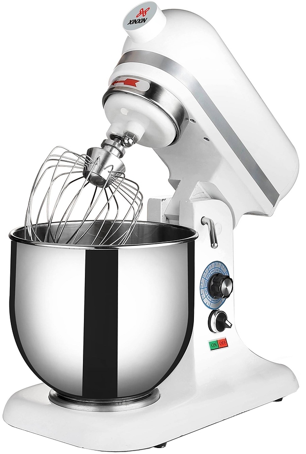 Миксер планетарный Xinxin B 7N используется на предприятиях общественного питания, торговли и пищевых производствах для замеса теста, взбивания крема, сливок, яичного белка и яиц. Модель оснащена электромеханическим управлением. Материал дежи и насадок - высококачественная нержавеющая сталь, материал корпуса - алюминиевый сплав, материал крышки - пластик.