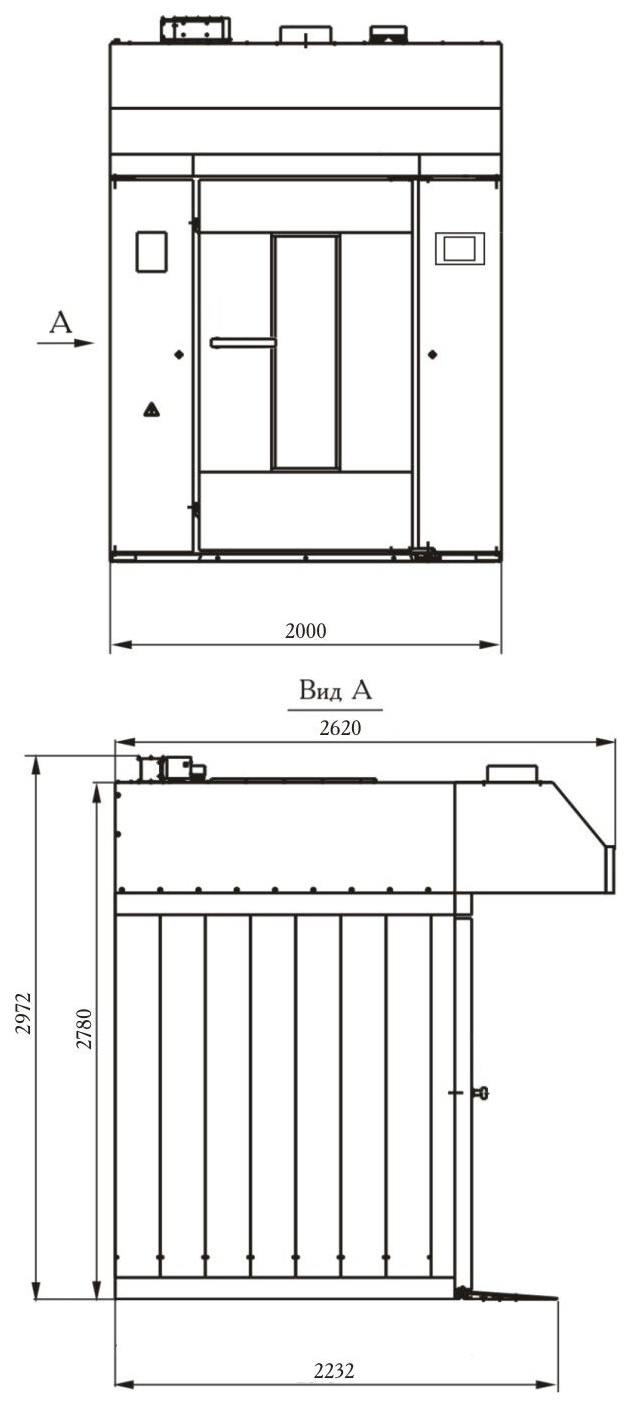 - Экран, стенки камеры, жалюзи и настил: 1820х720х2195 мм
