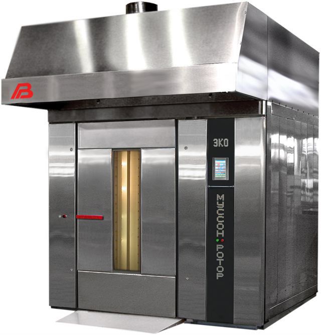 Ротационная печь используется в пекарнях, кондитерских и на предприятиях пищевой промышленности для выпечки хлебобулочных и кондитерских изделий. Облицовка, дверь печи, стенки, потолок и порог пекарной камеры выполнены из нержавеющей стали.