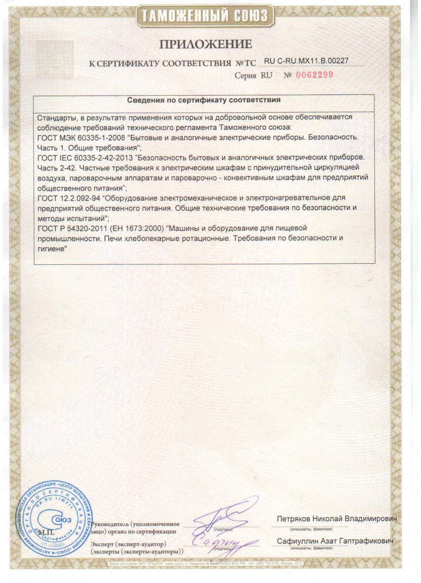 - Конвекция с паром (нагрев до 270 °С с периодическим впрыском пара)
