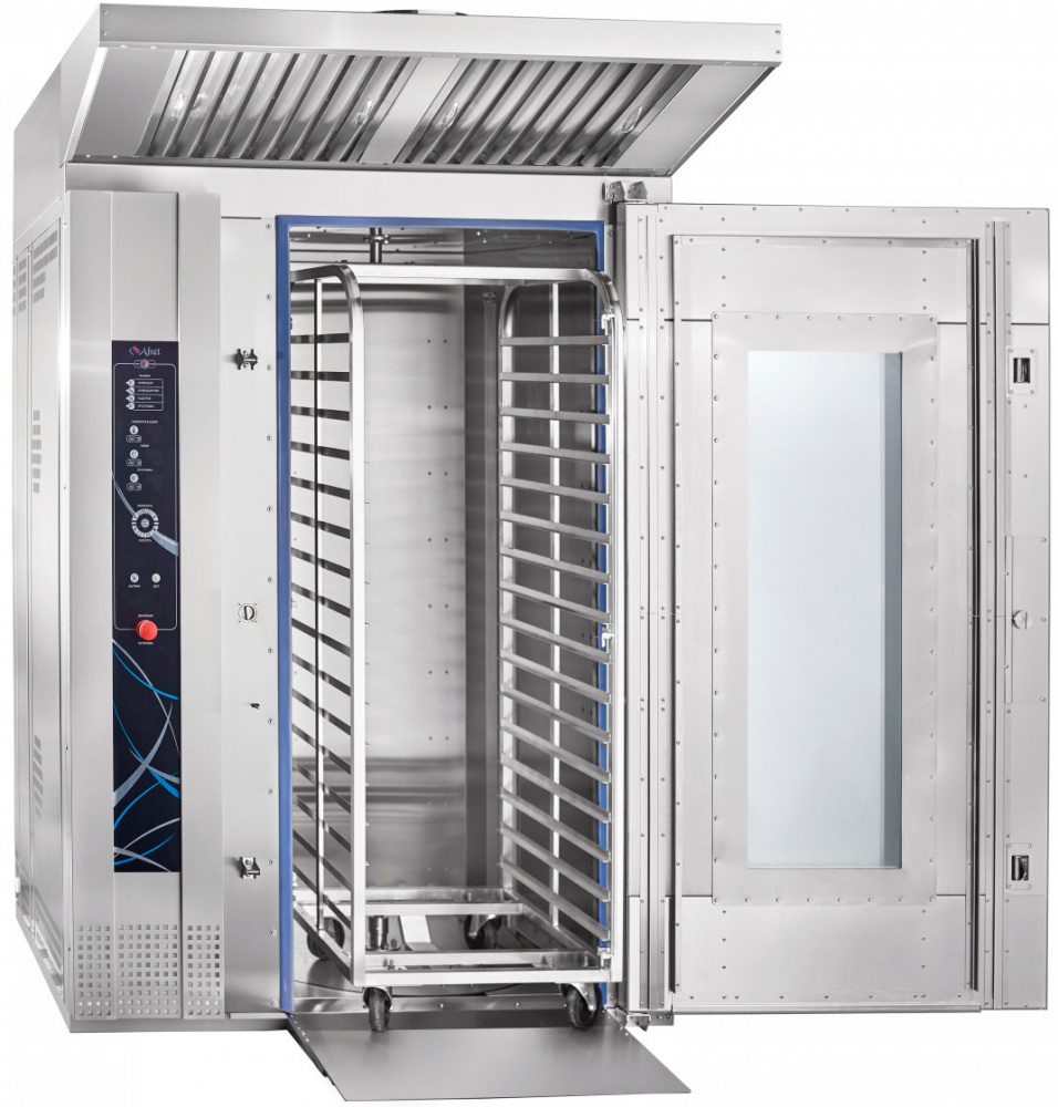 Ротационный пекарский шкаф Abat РПШ-18-8-6МР предназначен для приготовления хлебобулочных и кондитерских изделий, различных блюд методом обработки паром и горячим воздухом по отдельности или комбинированно на предприятиях общественного питания и торговли. Модель оснащена панелью управления с таймером, возможностью корректирования программ во время выпечки и отображения информации о режимах работы и аварийных ситуациях.