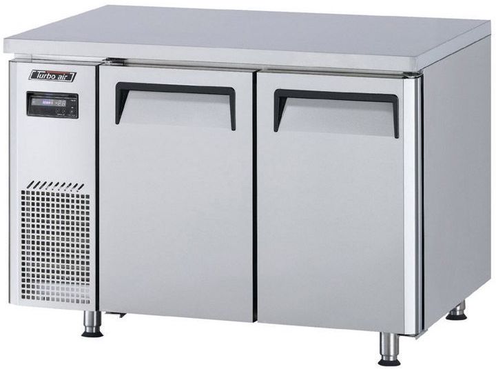 Холодильный стол Turbo air KUR12-2 состоит из рабочей поверхности, на которой можно раскатывать тесто и обрабатывать ингредиенты для приготовления блюд, и камеры, предназначенной для охлаждения и кратковременного хранения скоропортящихся продуктов и напитков на предприятиях пищевой промышленности, общественного питания и торговли. Корпус выполнен из нержавеющей стали с применением полиуретановой теплоизоляции высокой плотности и уплотнения из теплоэффективного АБС-пластика (акрилонитрилбутадиенстирола), не пропускающего конденсата, оборотная сторона и низ - из оцинкованной стали, пол - из нержавеющей стали с алюминиевыми вставками по бокам и сзади, регулируемые полки - из толстой проволоки с виниловым покрытием.