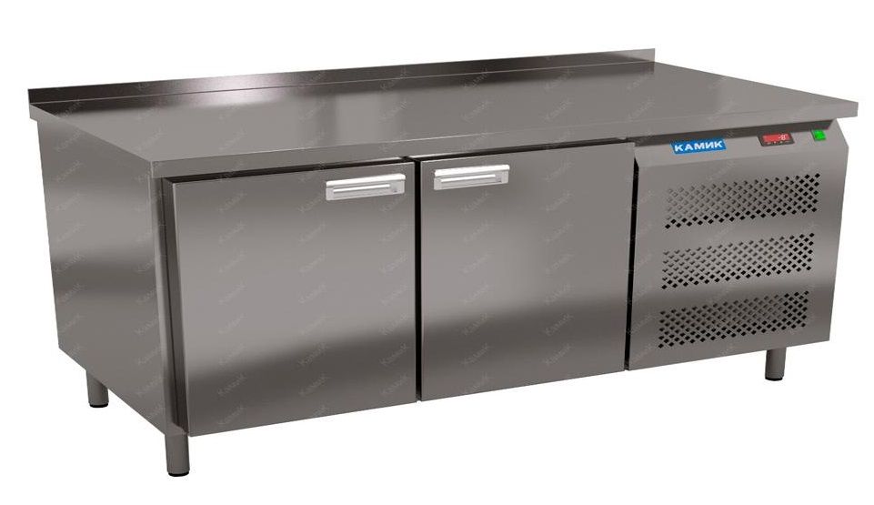 Морозильный стол КАМИК СМ-Т-20146 используется на предприятиях общественного питания и торговли для заморозки и длительного хранения продуктов, полуфабрикатов и мороженого, а также для установки теплового оборудования на него. Конструкция разделена на секции, каждая из которых оборудована сетчатой полкой и парой направляющих. Корпус выполнен из нержавеющей стали.