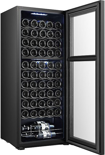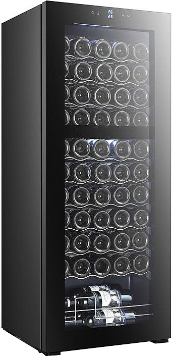 Винный шкаф Hurakan HKN-WNC160CD применяется для хранения вина при определенном уровне влажности и температуры в ресторанах, специализированных магазинах, отелях, ресторанах, в частных домах или квартирах. Модель оборудована настраиваемым термостатом и 3 полками в первом отделении и 6 полками во втором.