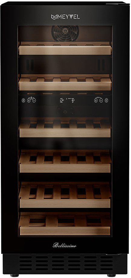 Винный шкаф Meyvel MV28NH-KBT2 используется на предприятиях общественного питания, торговли, пищевых производствах и в домашних условиях для демонстрационной выкладки, хранения и создания температурных условий, сохраняя все вкусовые свойства вина. Модель оснащена сенсорным управлением, автоматической разморозкой, 2 электронными термостатами и LED-подсветкой белого цвета. Материал корпуса - окрашенная сталь, материал двери - тройное стекло с защитой от УФ-лучей и черной рамкой, материал полок - массив бука.