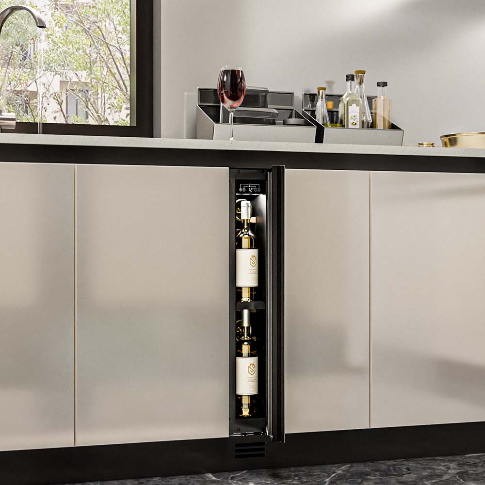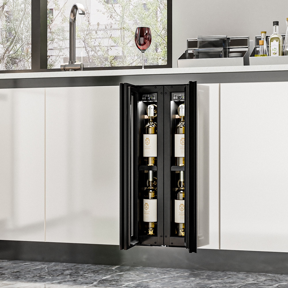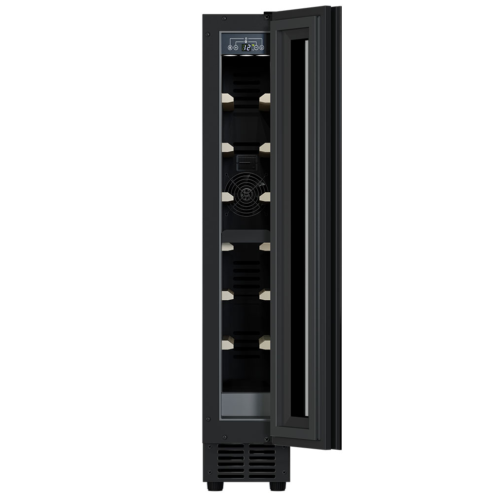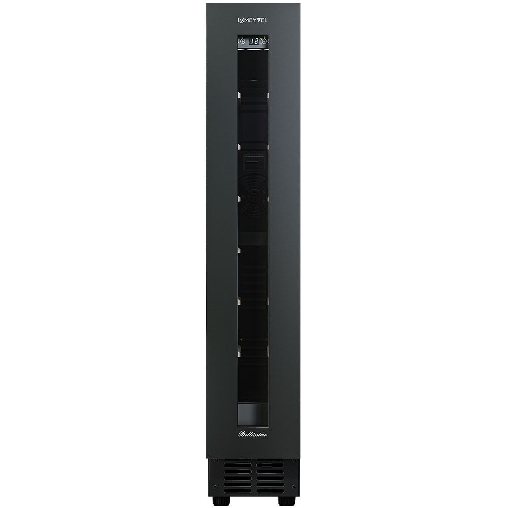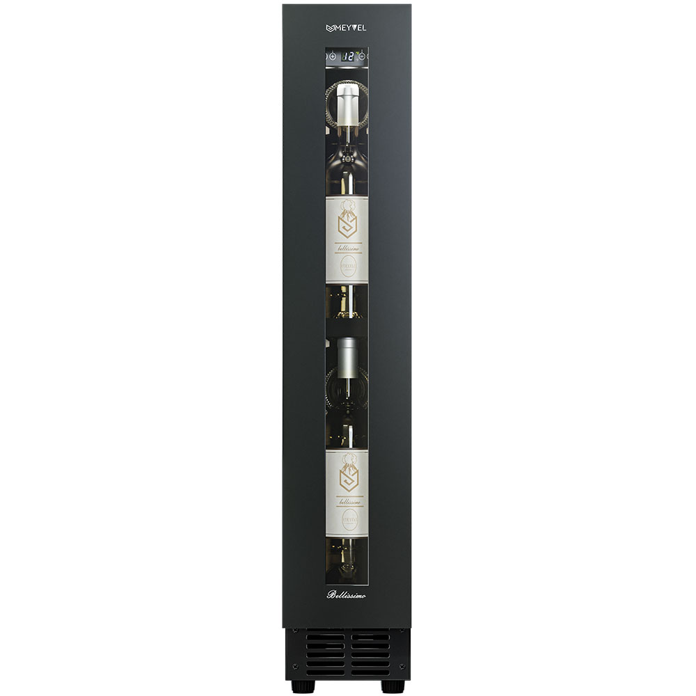 Винный шкаф Meyvel MV9NH-KBT1 используется на предприятиях общественного питания, торговли, пищевых производствах и в домашних условиях для демонстрационной выкладки, хранения и создания температурных условий, сохраняя все вкусовые свойства вина. Модель оснащена сенсорным управлением, автоматической разморозкой, электронным термостатом и LED-подсветкой. Материал корпуса и ручки - окрашенная сталь в черный цвет, материал двери - тройное стекло с защитой от УФ-лучей и черной рамой, материал полок - массив бука.