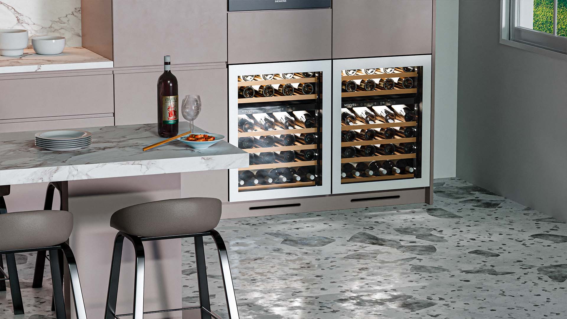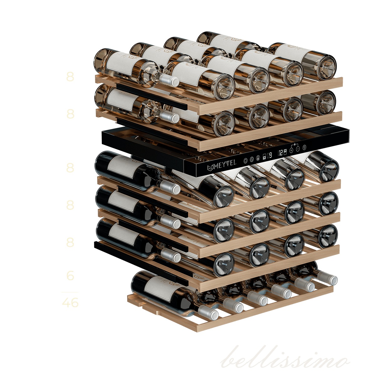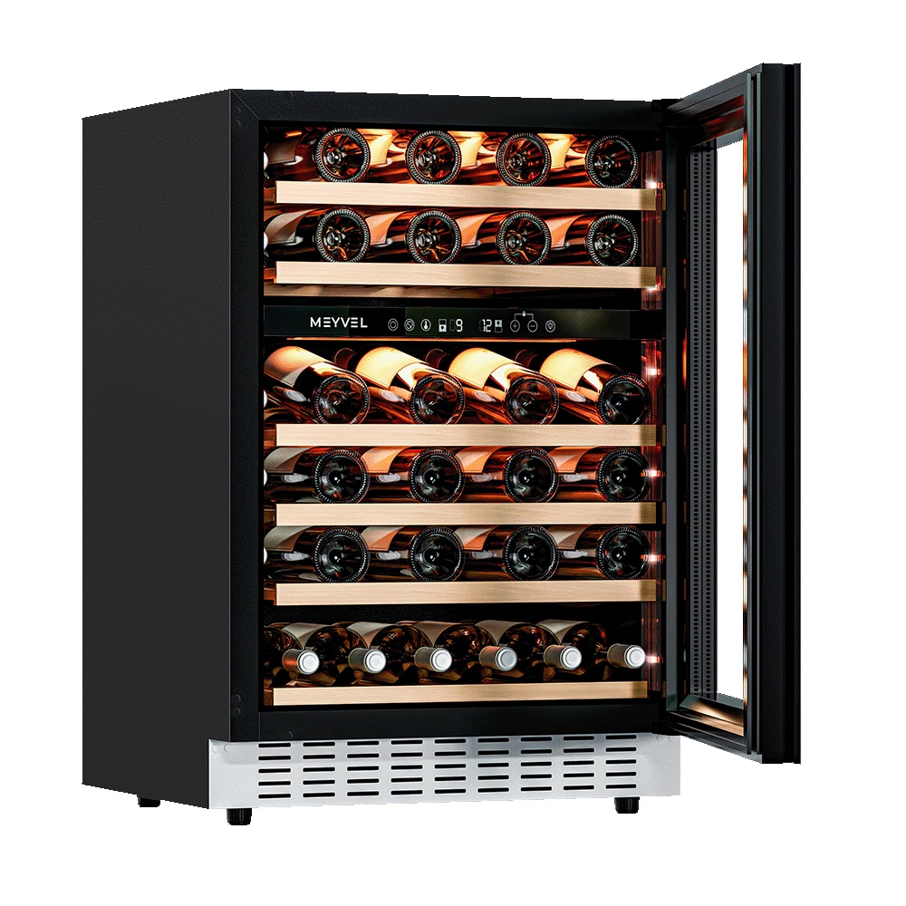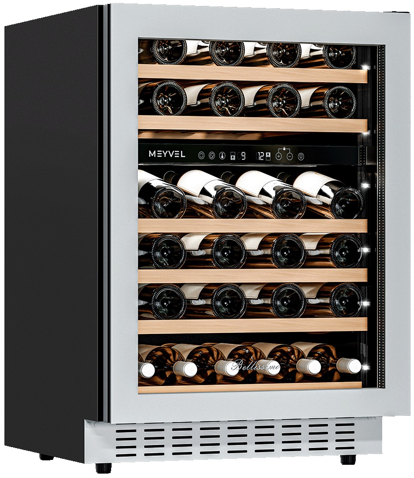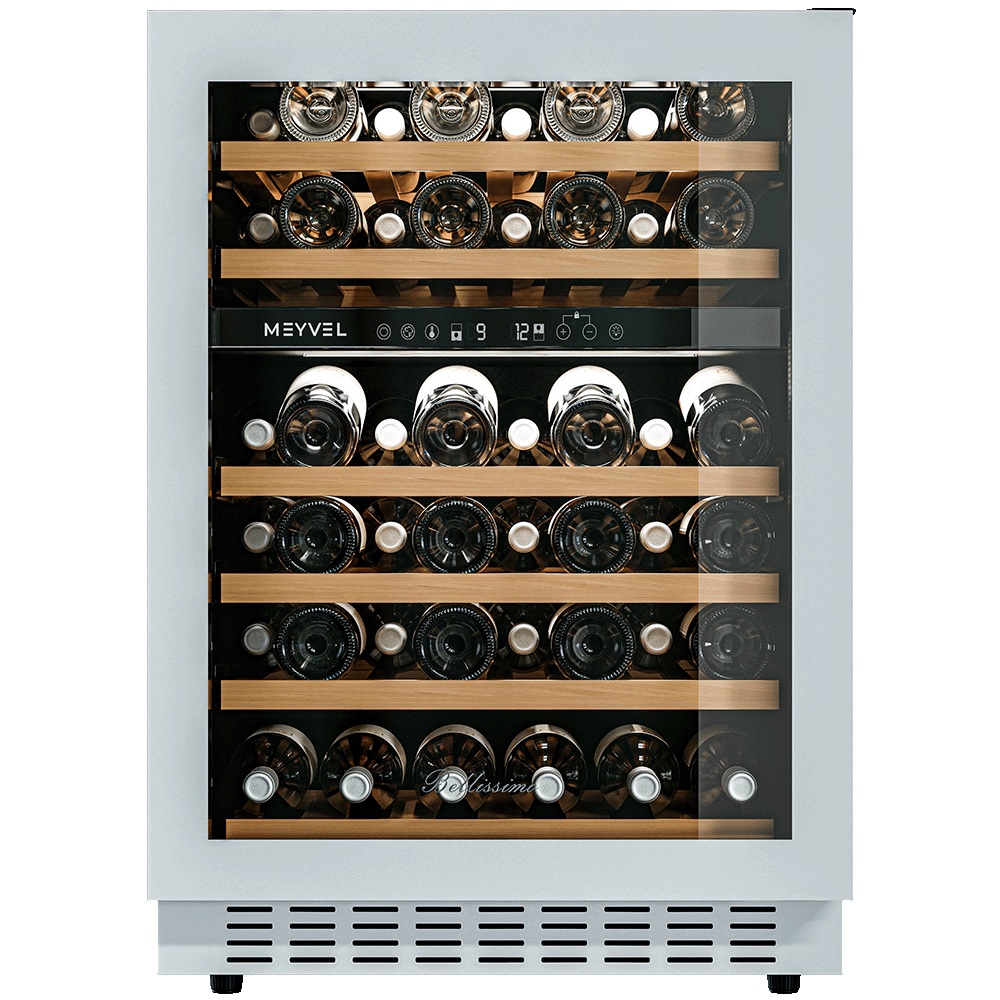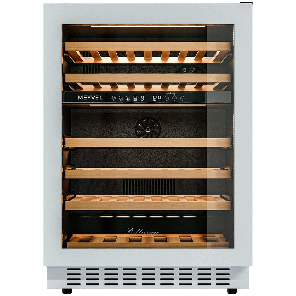 Винный шкаф Meyvel MV46NH-KWT2 используется на предприятиях общественного питания, торговли, пищевых производствах и в домашних условиях для демонстрационной выкладки, хранения и создания температурных условий, сохраняя все вкусовые свойства вина. Модель оснащена сенсорным управлением, электронным термостатом, LED-подсветкой, выдвижными полками, скрытой ручкой и регулируемыми ножками. Материал корпуса - окрашенная сталь, материал двери - тройное стекло с защитой от УФ-лучей, материал полок - массив бука.