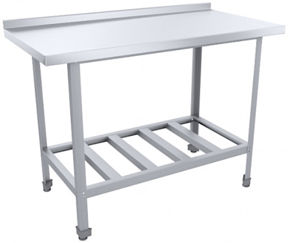 Производственный стол Пищевые Технологии Стандарт НК СРОб-6/6СНК-М предназначен для обработки продуктов питания, раскатки теста и хранения кухонного инвентаря на предприятиях общественного питания и торговли. Модель оснащена регулируемыми по высоте ножками. Каркас выполнен из нержавеющего уголка, столешница - из нержавеющей стали AISI 430 с усилением из листа ЛДСП.