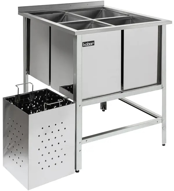 Моечная ванна Кобор ВМЯ/1-63/63/430 предназначена для санитарной обработки яиц на предприятиях общественного питания и торговли. Сварной каркас выполнен из нержавеющего стального уголка, раковины - из нержавеющей стали AISI 430.