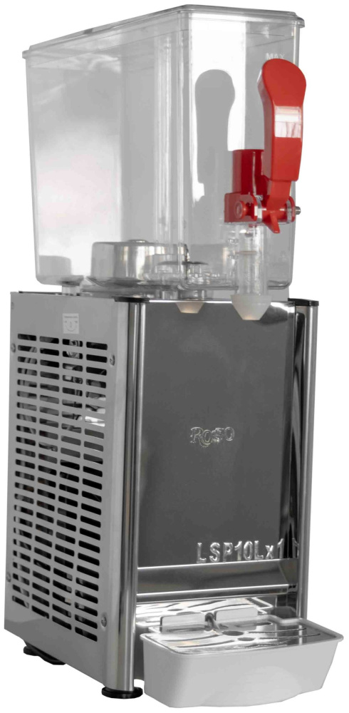 Сокоохладитель Rosso LSP10Lx1 используется на предприятиях общественного питания, торговли и пищевых производствах для демонстрации и охлаждения различных сокосодержащих напитков. Сокоохладитель оснащен каплесборником. Материал корпуса - нержавеющая сталь, материал резервуара - пластик.