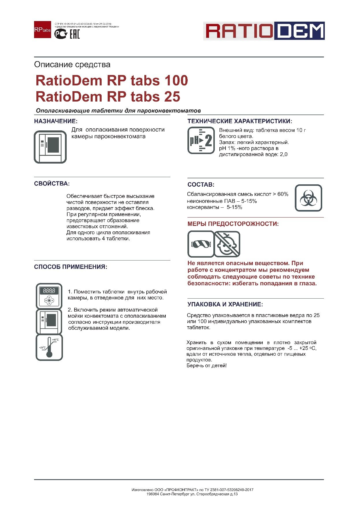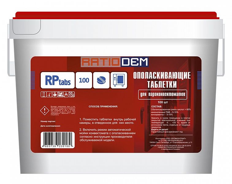 Demo RatioDem RP TABS 100 подходит для таких пароконвектоматов: Rational (серия SCC и CM), UNOX (Evolution), Abat (серия ПП2, ПМ2, ПМ2-01, BM2, 6-1/2П 6-1/3П), Tecnoeka (EKF), Apach (APT, A1, AP1, APM, APT, APMHS, APD), Electrolux (AOS, AOW)