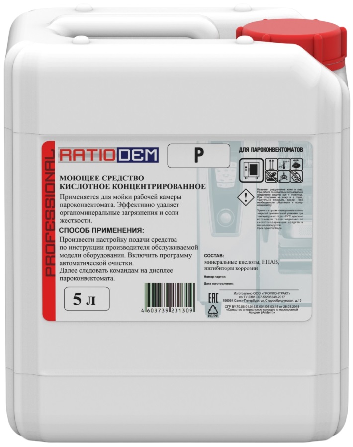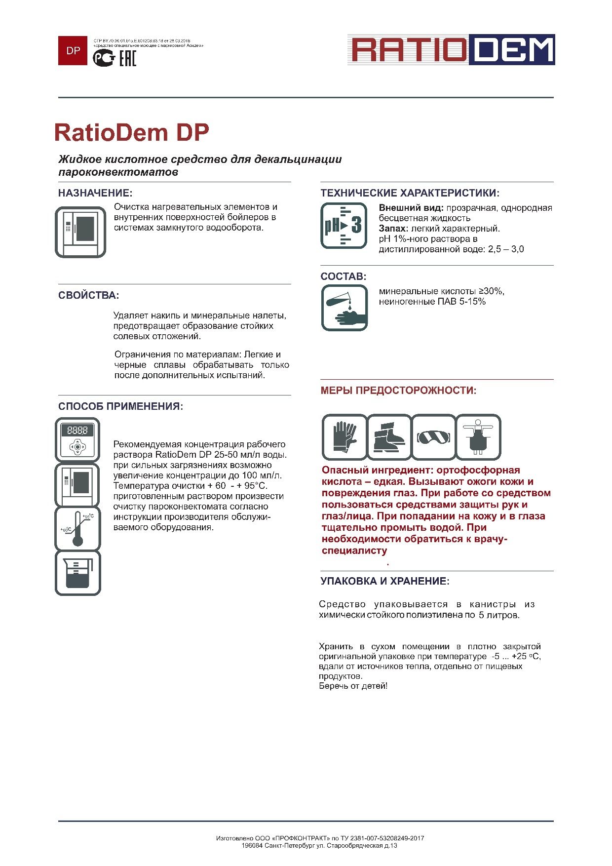 Средство для декальцинации пароконвектоматов RatioDem DPподходит для таких пароконвектоматов: Rational (серия SCC и CM), UNOX (Evolution), Abat (серия ПП2, ПМ2, ПМ2-01, BM2, 6-1/2П 6-1/3П), Tecnoeka (EKF), Apach (APT, A1, AP1, APM, APT, APMHS, APD), Electrolux (AOS, AOW)