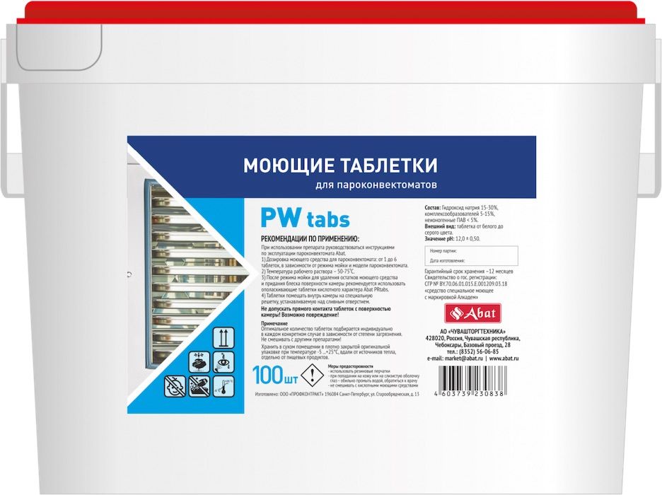 Моющие таблетки Abat PW tabsпредназначены для очистки поверхности камеры пароконвектомата.