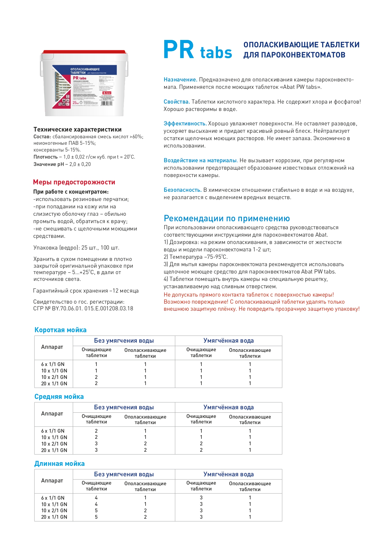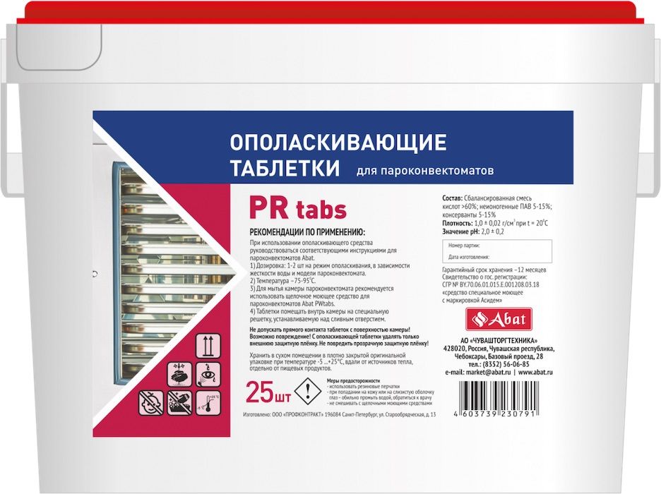 Ополаскивающие таблетки Abat PR tabsпредназначены для ополаскивания камеры пароконвектомата.