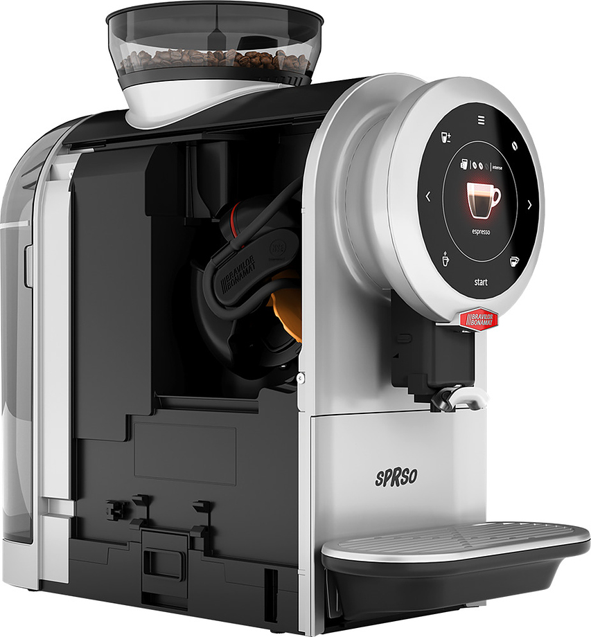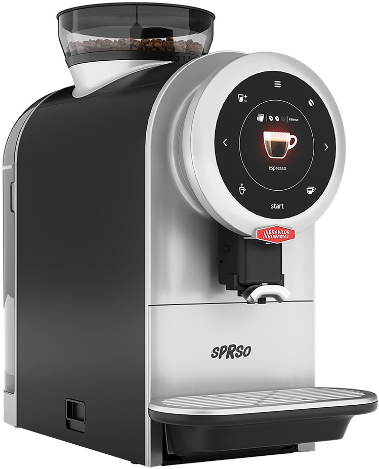 Кофемашина Bravilor Bonamat SPRSO BLACK 230V (STD) используется на предприятиях общественного питания, торговли, пищевых производствах, в офисах, частных домах и квартирах для приготовления кофе, эспрессо, двойного эспрессо, латте, макиато, моккачино, американо и прочих напитков. Модель оборудована сенсорным экраном с опциями настройки крепости, объема и размера помола. Материал корпуса - нержавеющая сталь и пластик, не содержащий BPA.