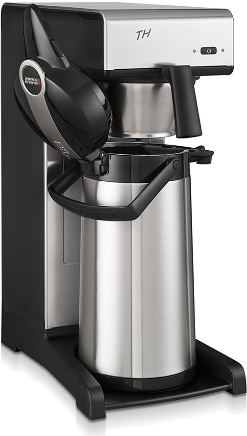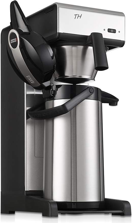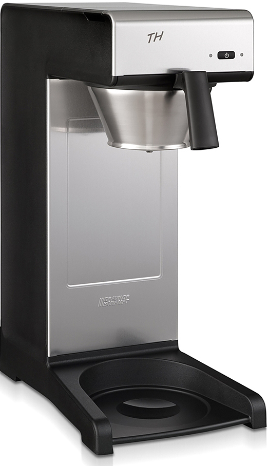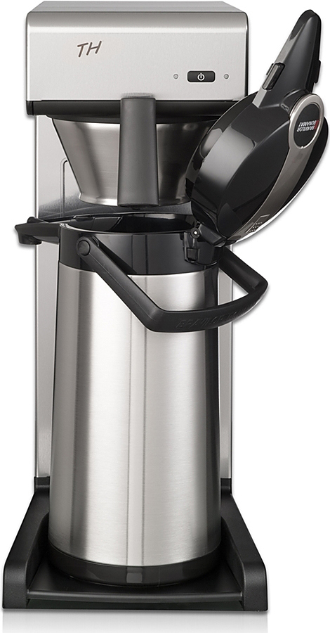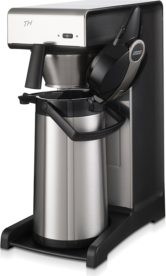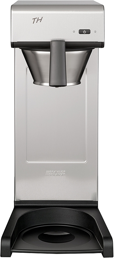 Заливная кофеварка Bravilor Bonamat TH используется на предприятиях общественного питания и торговли для приготовления фильтрованного кофе непосредственно в термос Furento или Advanta. Модель оснащена системой кофеварения и индикаторами готовности кофе и удаления накипи. Корпус выполнен из высококачественной нержавеющей стали, черные детали - из синтетических материалов.