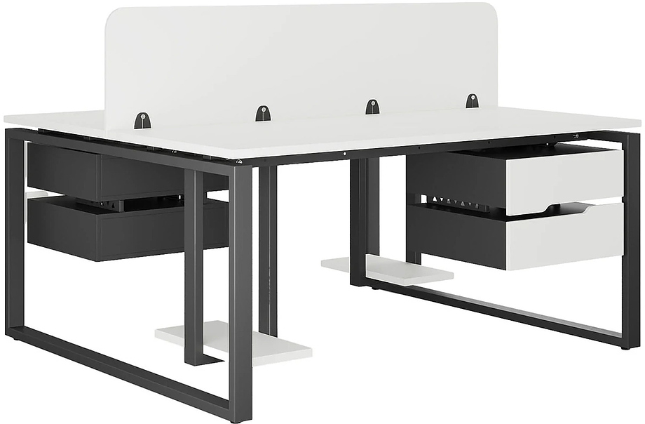 Офисный стол Кобор O1/2-80/120 black/premiuml предназначен для двух рабочих мест и идеально подходит для офисов и кабинетов руководителей. Модель оснащена О-образными опорами. Материал столешницы - прочный ЛДСП толщиной 25 мм, усиленная снизу металлическим каркасом, материал опор и каркаса - окрашенный металл.