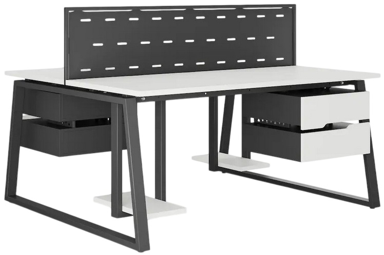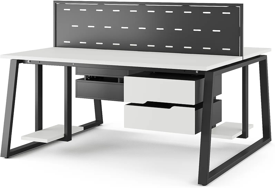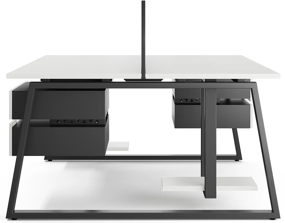 Офисный стол Кобор TR/2-80/120 black/premium предназначен для двух рабочих мест и идеально подходит для офисов и кабинетов руководителей. Модель оснащена опорами в форме трапеции. Материал столешницы - прочный ЛДСП толщиной 25 мм, усиленная снизу металлическим каркасом, материал опор и каркаса - окрашенный металл.