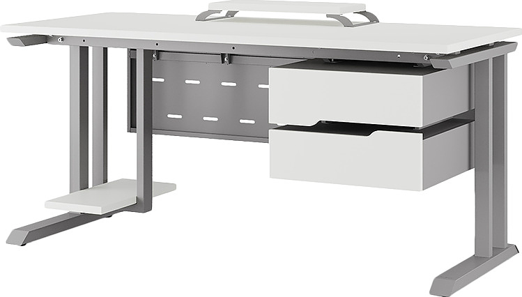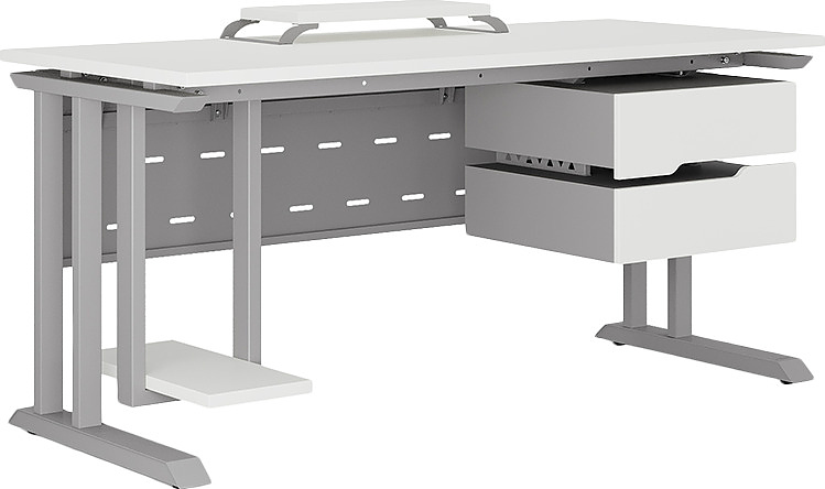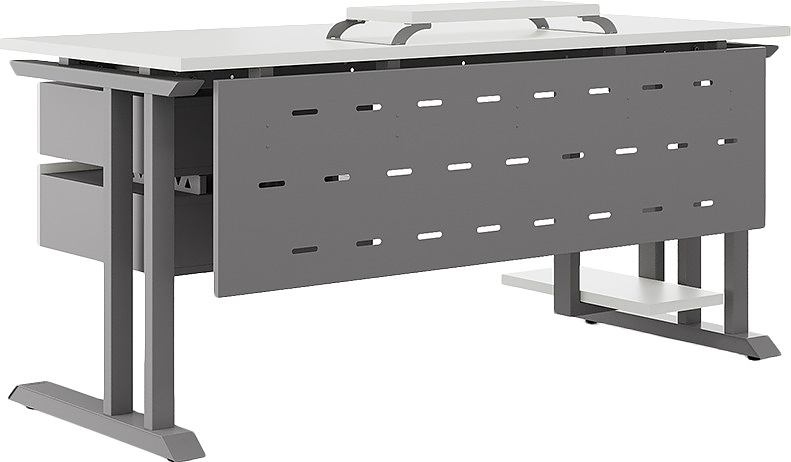 Офисный стол КОБОР L1-120/60 aluminum/premium используется в офисных помещениях и кабинетах руководителей. Модель оснащена L-образными опорами. Материал столешницы - прочный ЛДСП толщиной 25 мм, усиленная снизу металлическим каркасом, материал опор - окрашенный металл.