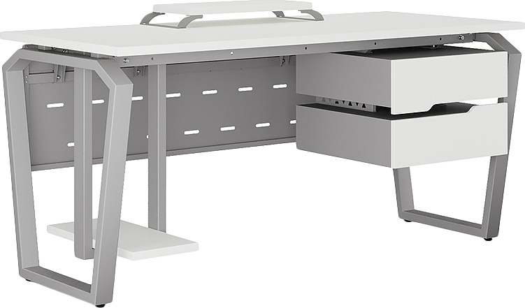 Офисный стол КОБОР TB-120/60 aluminum/premium используется в офисных помещениях и кабинетах руководителей. Конструкция модели включает опоры, выполненные в виде перевернутой трапеции со скошенными верхними углами. Материал столешницы - прочный ЛДСП толщиной 25 мм, усиленная снизу металлическим каркасом, материал опор - окрашенный металл.