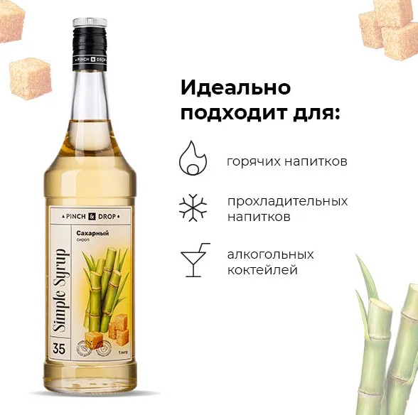Сироп «Сахарный Тростник» Pinch&Drop используется для приготовления коктейлей, безалкогольных напитков, десертов, выпечки и добавления в кофе и стал незаменимым ингредиентом для кофеен, баров и ресторанов.Сироп «Сахарный Тростник» обладает насыщенным вкусом тростникового сока. Он сладкий, но не совсем напоминает обычный сахар. Его можно сравнить с белым квасом, однако в нём отсутствуют горечь и кислота. Ощущается только чистая сладость и ничего лишнего.