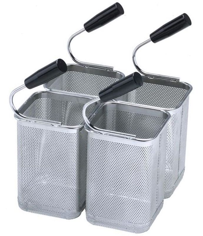 Набор корзин TECNOINOX GN 1/6 (120625) используется совместно с макароноварками и аппаратами для отваривания Tecnoinox 600, 650, 700, 750 серии и позволяет лучше контролировать порционность и таким способом экономить продукты и время. Благодаря скругленному дну макароны не прилипают, что облегчает их выгрузку и повышает качество самого блюда. Корзина изготовлена из нержавеющей стали AISI 304 и имеет прямоугольную форму.