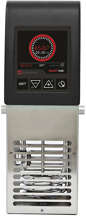 Аппарат Sous Vide Sammic SmartVide 5 предназначен для приготовления широкого спектра блюд на предприятиях общественного питания, торговли и пищевых производствах. Модель оснащена TFT-дисплеем с 4 кнопками на панели управления, контроллером температуры и эргономичной ручкой. Материал конструкции - высококачественная нержавеющая сталь, материал передней панели и ручки - полиамид армированный стекловолокном.