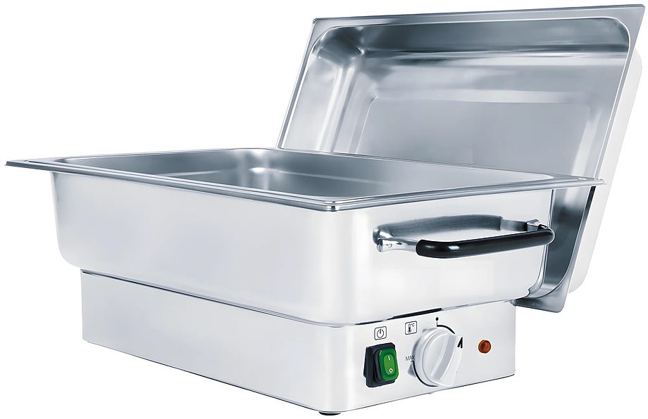 Чафинг-диш Hurakan HKN-CD14ELS используется для постоянного подогрева первых и вторых блюд и поддержания их оптимальной температуры на предприятиях общественного питания, торговли, пищевых производствах и в сфере выездного обслуживания и для организации банкетов, фуршетов, шведских столов. Модель оборудована съемной крышкой. Материал корпуса - высококачественная нержавеющая сталь.