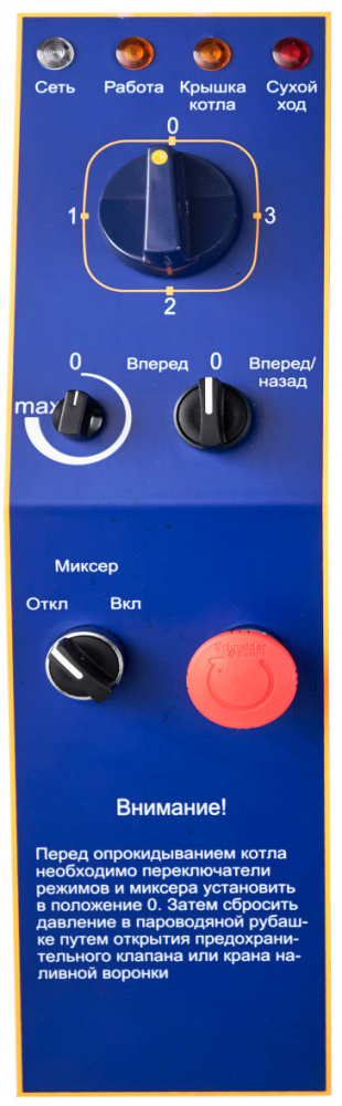 Варочный котел Abat КПЭМ-100-ОМР с функциями опрокидывания и перемешивания предназначен для приготовления вторых и третьих блюд, бульонов, соусов и десертов, а также для кипячения воды на предприятиях пищевой промышленности и общественного питания. Модель оснащена механической панелью управления и сливным краном, позволяющим производить слив готового продукта без опрокидывания.