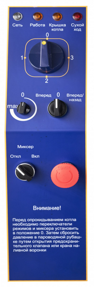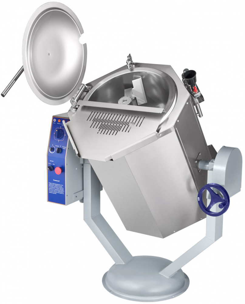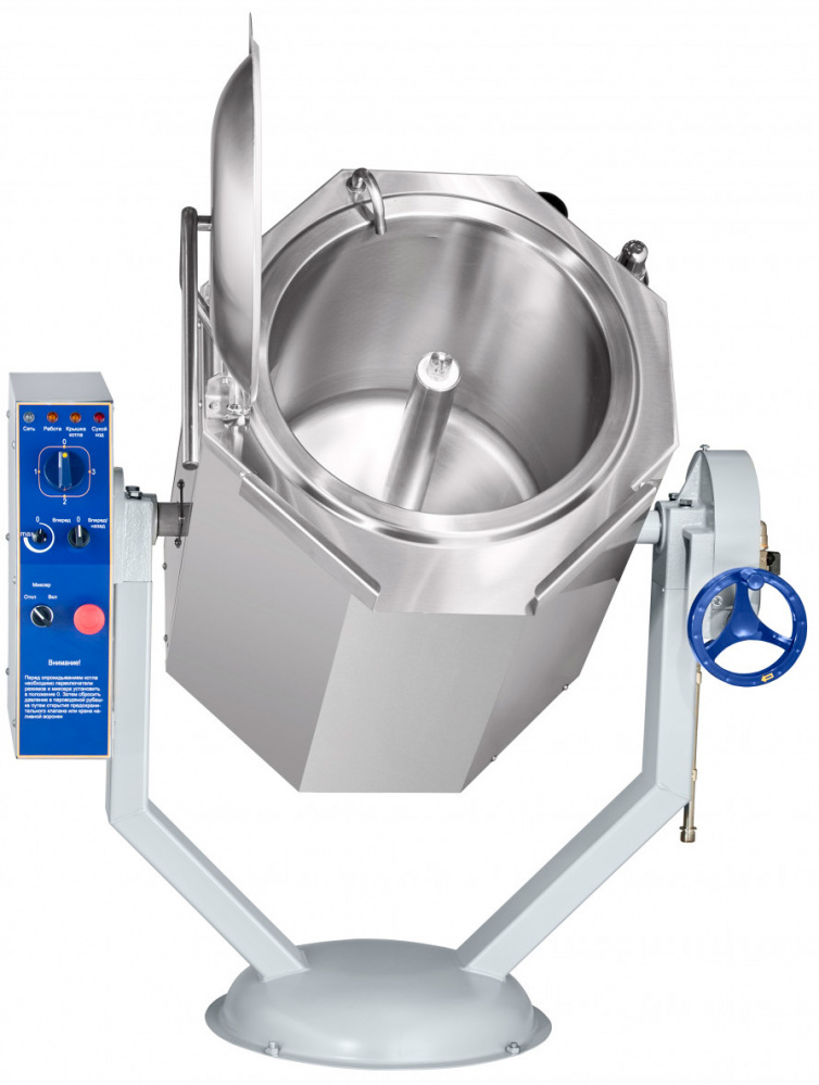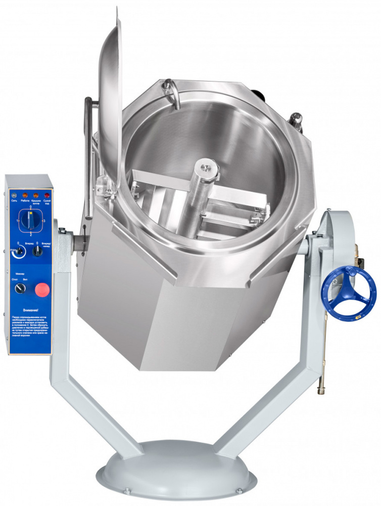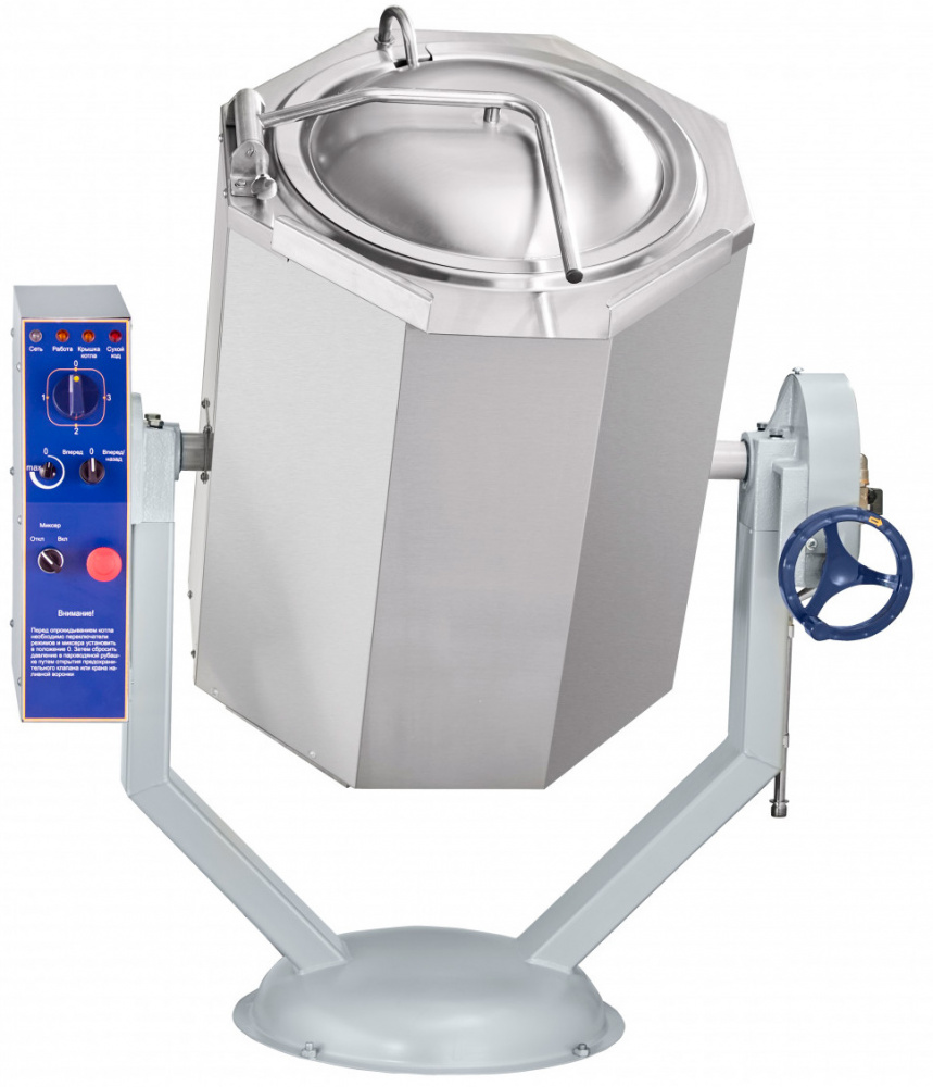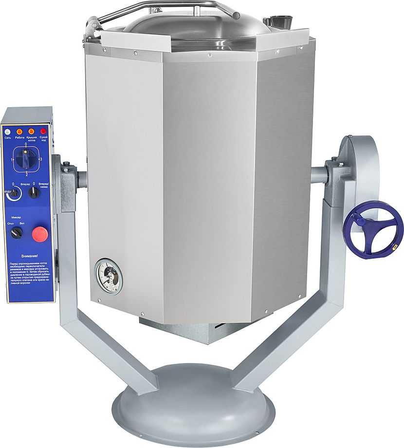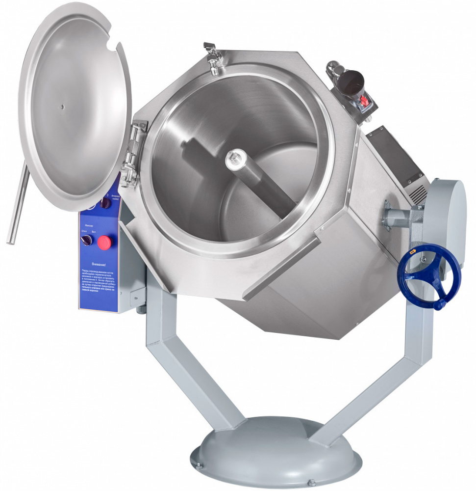• Слив готового продукта путем ручного опрокидывания варочного сосуда с помощью червячной передачи