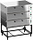 В комплект поставки входят 6 противней GN 2/1 из черной стали глубиной 20 мм, рама-подставка и 4 регулируемые опоры.