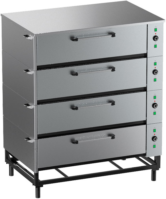 Жарочный шкаф Тулаторгтехника ЭШП-4с(у) предназначен для выпечки хлебобулочных и кондитерских изделий и приготовления различных блюд на предприятиях общественного питания и торговли. Каждая секция оснащена 2 нижними и 2 верхними нагревательными элементами. Рабочая, лицевые, боковые и задняя поверхности выполнены из оцинкованной стали, рама - из стальной профильной трубы, окрашенной порошковой краской.