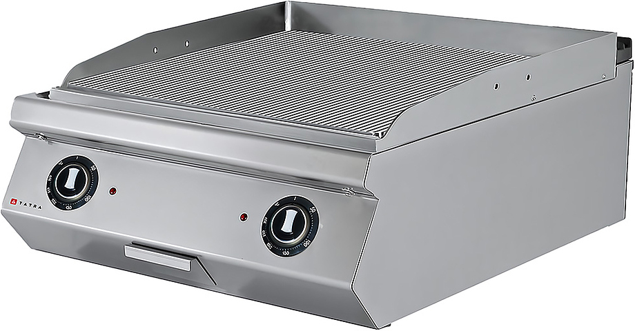 Жарочная поверхность Tatra TET.89R серии 900 используется для жарки мяса, птицы, рыбы и овощей на предприятиях общественного питания, торговли и пищевых производствах. Модель оснащена электромеханическим управлением, термостатом, регулируемыми ножками и съемной емкость для сбора масла и жира. Материал корпуса - высококачественная нержавеющая сталь.