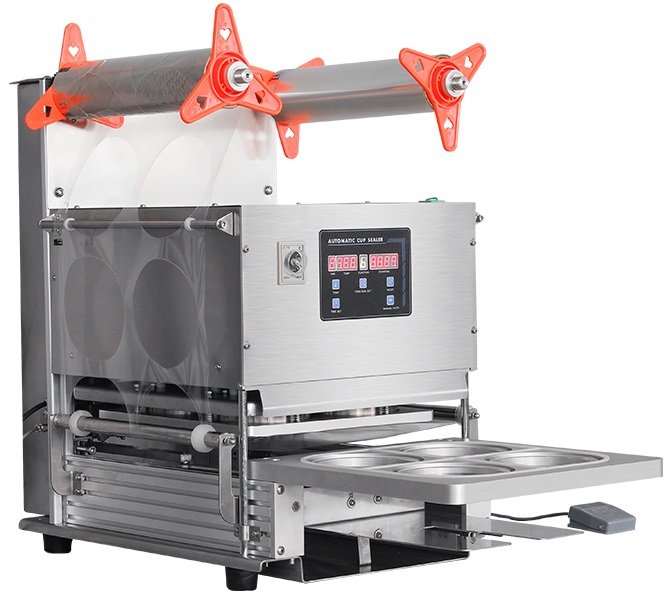Автоматический запайщик лотков Hualian НL-95A используется на производственных площадках, предприятиях пищевой промышленности, общественного питания и торговли для запечатывания термосвариваемой пленкой цилиндрических лотков и контейнеров различных продуктов питания. Модель оснащена мембранной клавиатурой, 4 цифровыми дисплеями, таймером, несъемной матрицей для стаканов и 2 рулонодержателями. Материал корпуса - высококачественная нержавеющая сталь.
