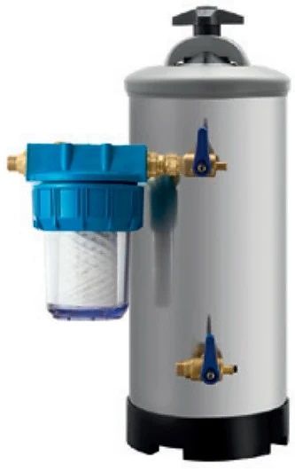 Умягчитель воды содержит в себе синтетическую ионную смолу, которая нейтрализует ионы магния и кальция, а затем заменяет их на ионы натрия. Его конструкция выполнена в виде цилиндрического сосуда изготовлена из нержавеющей стали. Водоумягчитель имеет герметичную крышку сверху, которая легко снимается для регенерации и сервисного обслуживания.